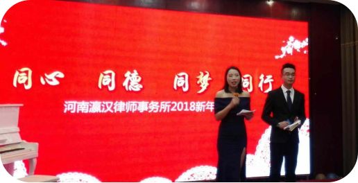 这次年会特地邀请了新乡县工商联主席李茂通,禾一商贸有限公司董事长张成林,鹏威体育有限公司董事长孙跃辉,河南瀛宋律师事务所主任陈晓明,河南瀛永兴律师事务所主任白雪作为分享嘉宾,为大家分享过往的2017,展望2018。各位嘉宾在为瀛汉律师事务所送上祝福的同时,也对瀛汉律所在过完一年中的工作给于了高度评价,并变现初了对加强今后进一步合作方面的意向。